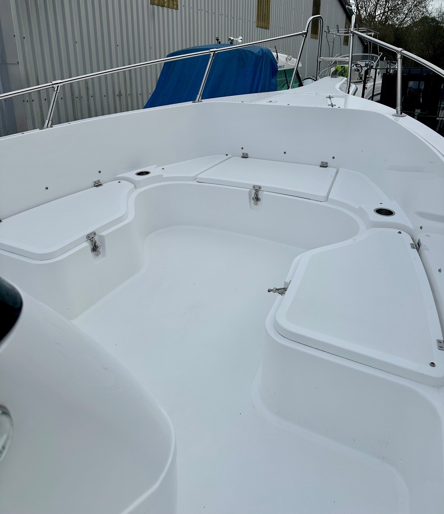 Quality control is performed throughout the entire build process. The lamination process is closely calibrated for ratios of glass to resin, for correct pressures on spraying equipment, for resin temperatures, catalyst percentages and cure time. These details ensure maximum structural strength and resistance to the hard marine environment. Finally, all boat parts remain in the mould through the entire curing process, thereby eliminating any possibility of warping.